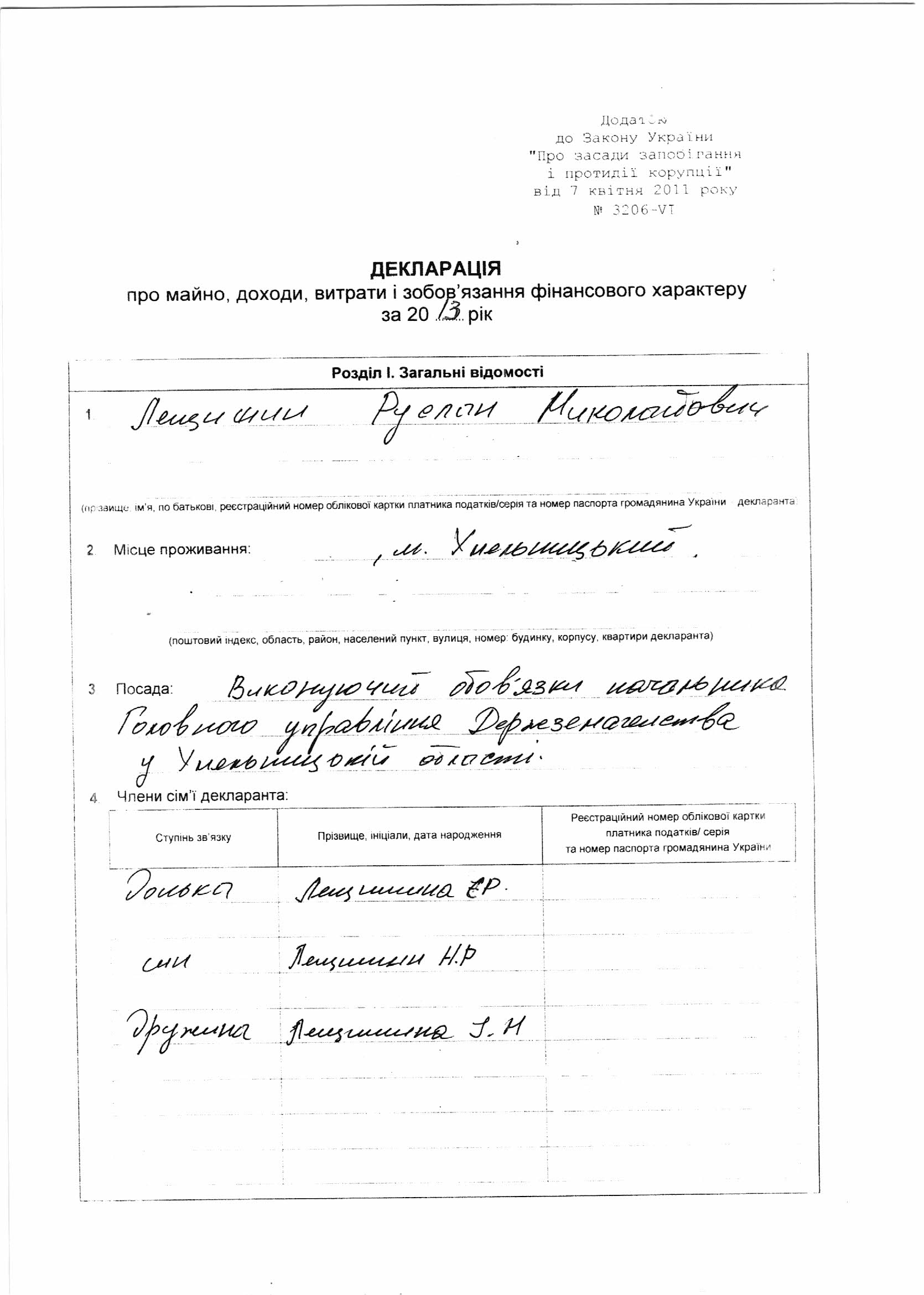 начальника Головного управління Лещишина Руслана Миколайовича